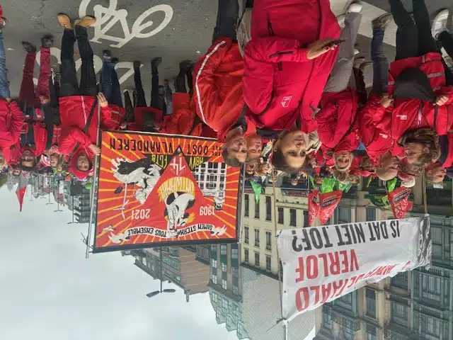 Le siège du parti Vooruit, boulevard de l’Empereur, a également été pris pour cible : des slogans tels que « Vooruit, shame on you » ont été tagués sur la façade, et une couronne mortuaire a été déposée devant le bâtiment que le parti partage avec le PS, en référence aux réformes de pension défendues par le gouvernement.