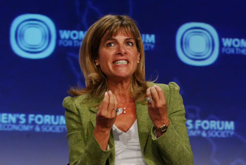 French Anne Lauvergeon, Chairman of the Executive Board of French nuclear energy group Areva talks during the plenary session "Women's responsability in improving society: A new dimension" 05 October 2006 at the second edition of the Women's Forum For the Economy and Society in Deauville, France. AFP PHOTO MYCHELE DANIAU (Photo by MYCHELE DANIAU / AFP)