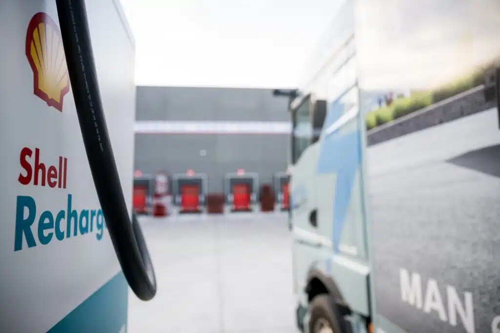 ATTENTION EDITORS: FOCUS COVERAGE, DISTRIBUTION REQUESTED TO BELGA - Illustration picture taken during the inauguration of the first semi-public charging station for electric trucks in Wallonia, a partnership between Remitrans and SBRS, a member of the Shell group, on Tuesday 04 November 2025 in Ath. BELGA PHOTO JASPER JACOBS