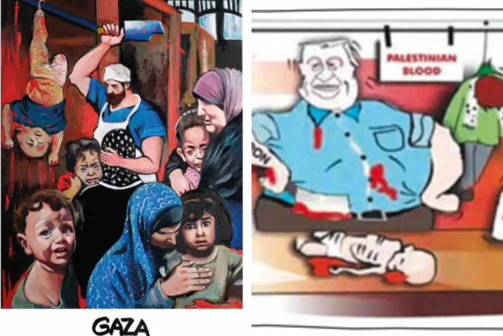 Après la publication par HUMO d’une caricature intitulée « Gaza abattage sans étourdissement » montrant un boucher « israélien » hachant un petit enfant gazaoui, l’Institut Jonathas publie une étude de l’historien Joël Kotek dénonçant la résurgence d’imaginaires antisémites médiévaux. Une plainte contre HUMO a été déposée auprès du Conseil de déontologie journalistique.