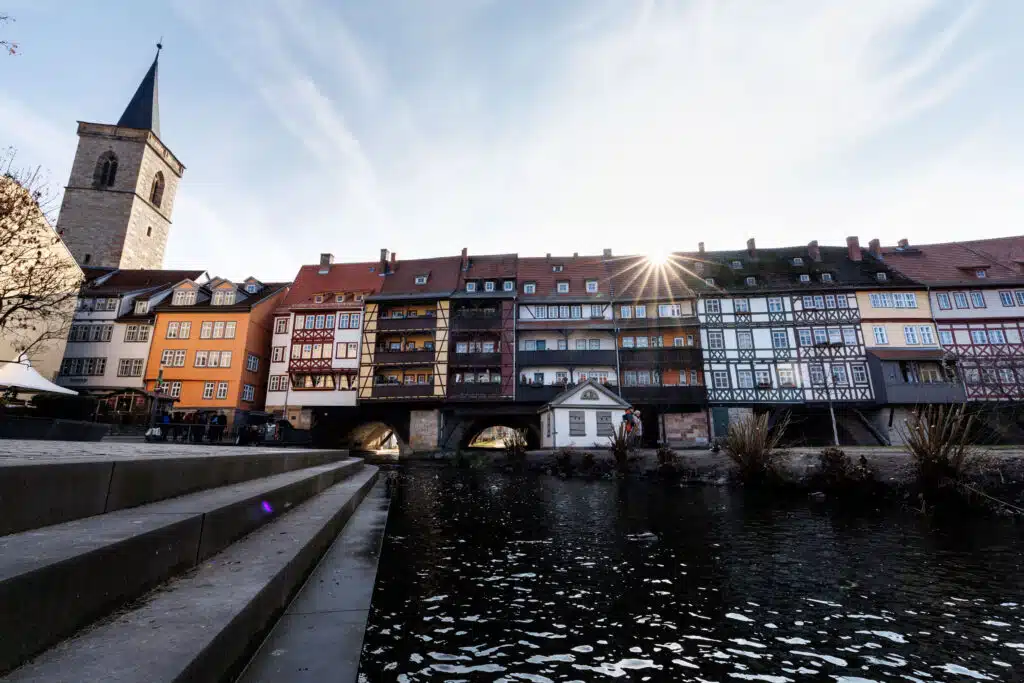 08 February 2025, Thuringia, Erfurt: View of the half-timbered houses on the Krämerbrücke on 08.02.2025 in the historic old town of Erfurt (Thuringia). The Krämerbrücke is a landmark of the city of Erfurt and the longest continuously built and inhabited bridge in Europe. Photo: Matthias Balk/dpa