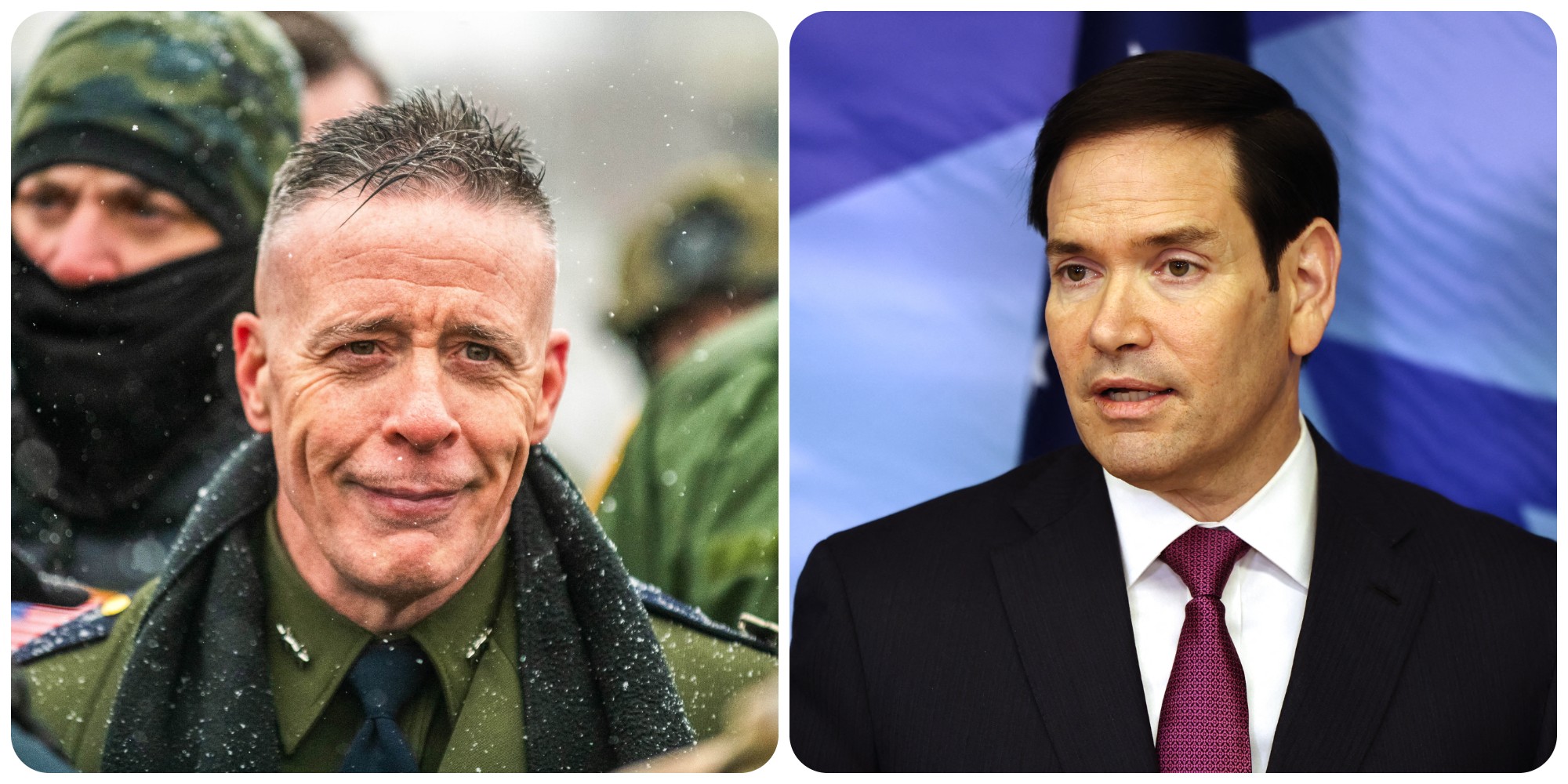 Selon une confirmation officielle de l’ICE (dont le chef est le devenu célèbre Bovino, sur la photo de gauche), ces agents auront pour mission principale d’assurer la sécurité du secrétaire d’État américain Marco Rubio (en photo, à droite), attendu le 6 février à la cérémonie d’ouverture à Milan. Le vice-président américain JD Vance sera également présent, mais bénéficiera, lui, de la protection habituelle de la Secret Service.
