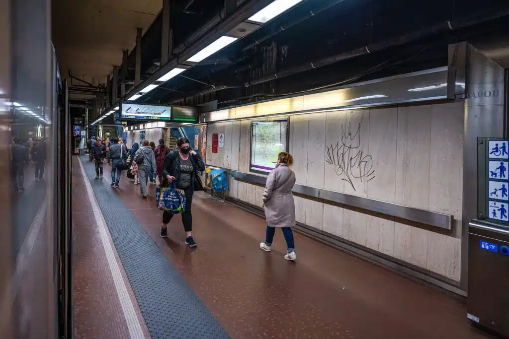 The Madou underground metro station in Brusels, Belgium 28 May 2025
