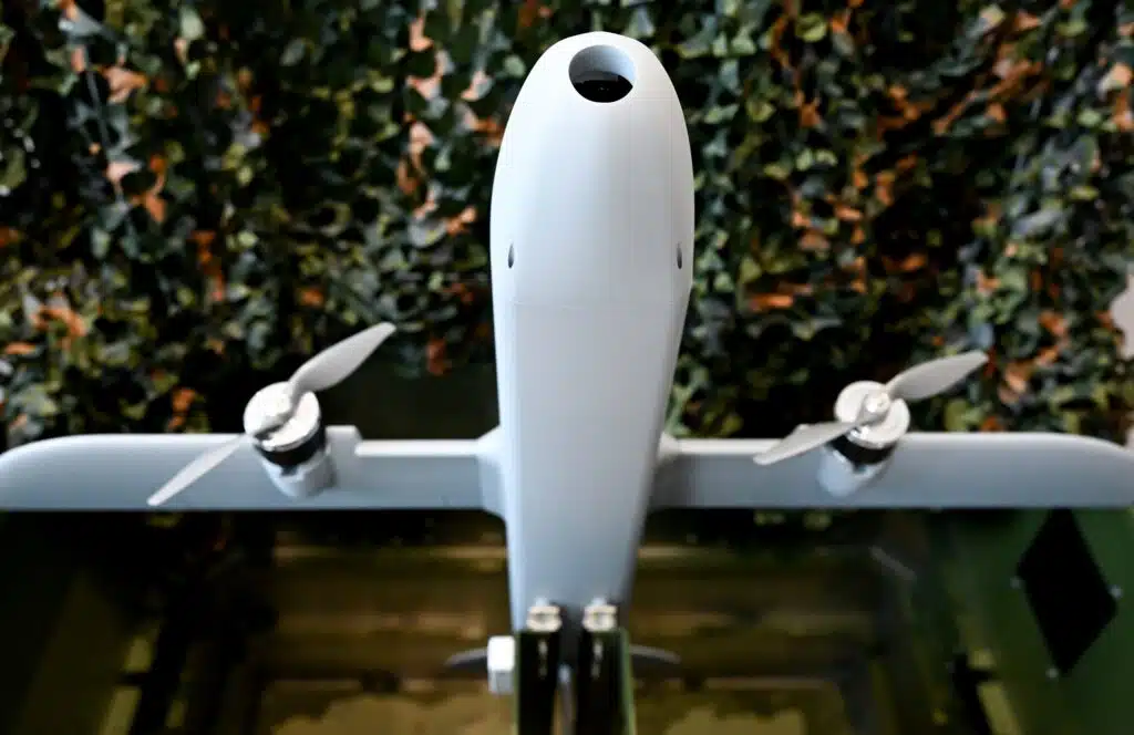 06 February 2026, Bavaria, Munich: A drone from TYTAN Technologies can be seen during a visit by Federal Minister of Economics Reiche. During her visit, Reiche wants to find out about the company's research and development activities, among other things. Photo: Sven Hoppe/dpa