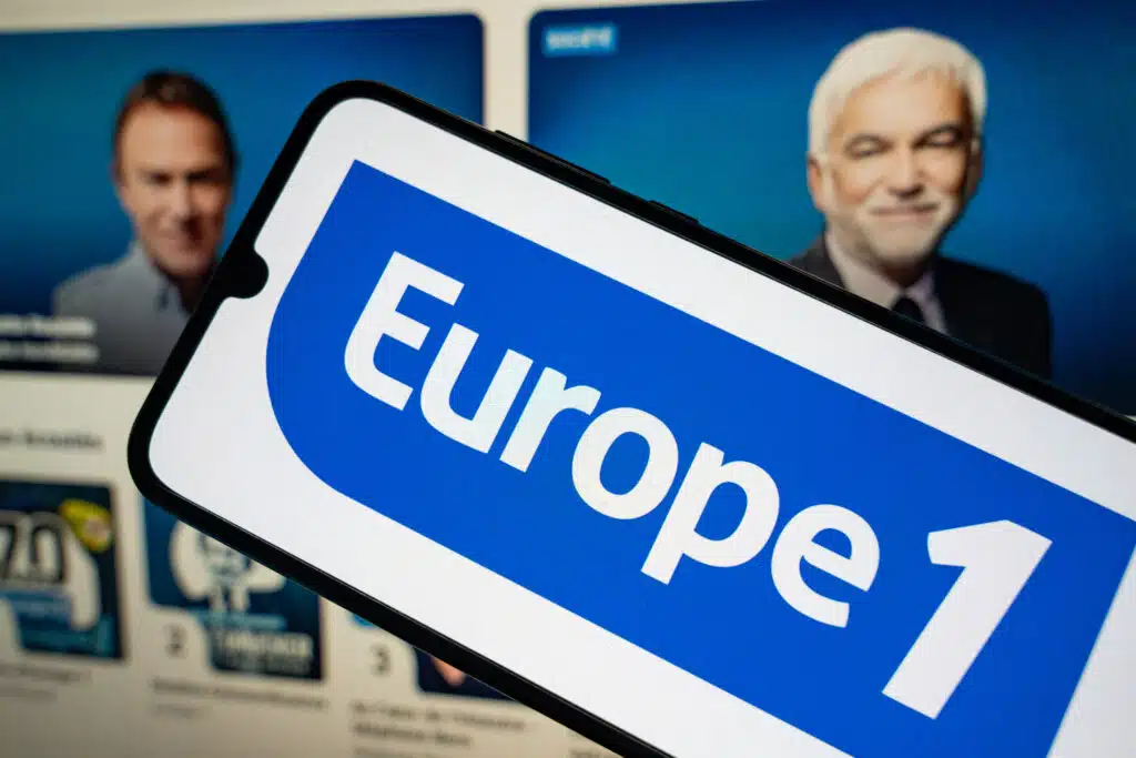 France, 2025-01-06 Radio station illustration. Smartphone displaying the Europe 1 radio logo in front of the radio website, Pascal Praud and Christophe Hondelatte on screen. Photograph by Jean-Marc Barrere / Hans Lucas. France, 2025-01-06 Illustration stations de radio. Smartphone affichant le logo de la radio Europe 1 devant le site internet de la radio, Pascal Praud et Christophe Hondelatte a l ecran. Photographie par Jean-Marc Barrere / Hans Lucas. (Photo by Jean-Marc Barrère / Hans Lucas / Hans Lucas via AFP)