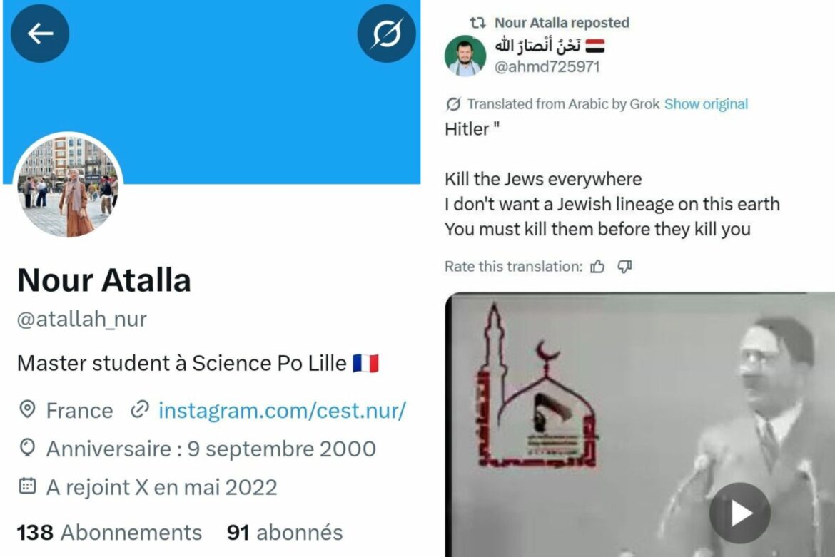 Arrivée en France le 11 juillet grâce à une bourse gouvernementale, une étudiante originaire de Gaza devait suivre des études à Sciences Po Lille. Mais des captures d’écran de ses publications en ligne, attribuées à son compte aujourd’hui fermé, ont révélé des propos violemment antisémites, dont des appels au meurtre de juifs.