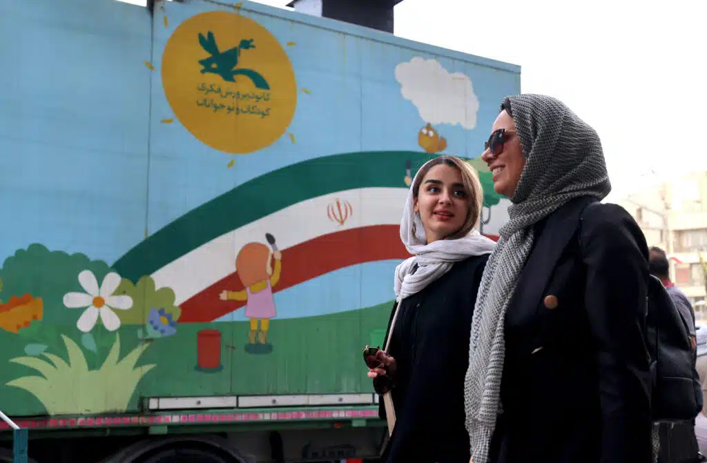 (Photo Atta Kenare / AFP : deux femmes marchent dans les rues de Téhéran durant le cessez-le-feu, 24 juin 2025)