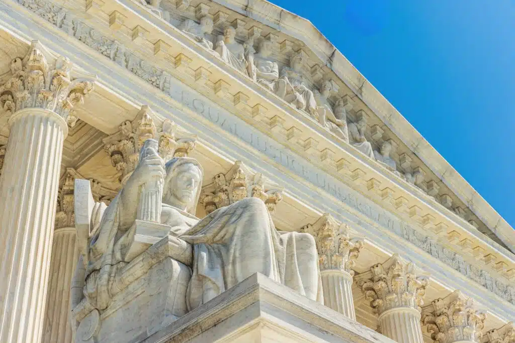 Close Up of the Supreme Court of the United States in Washington DC, USA Inscription at the entrance of the supreme court saying: Equal Justice Under Law Washington D.C. USA *** Nahaufnahme des Obersten Gerichtshofs der Vereinigten Staaten in Washington DC, USA Inschrift am Eingang des Obersten Gerichtshofs Copyright: xCHRISTIANxOFFENBERGx