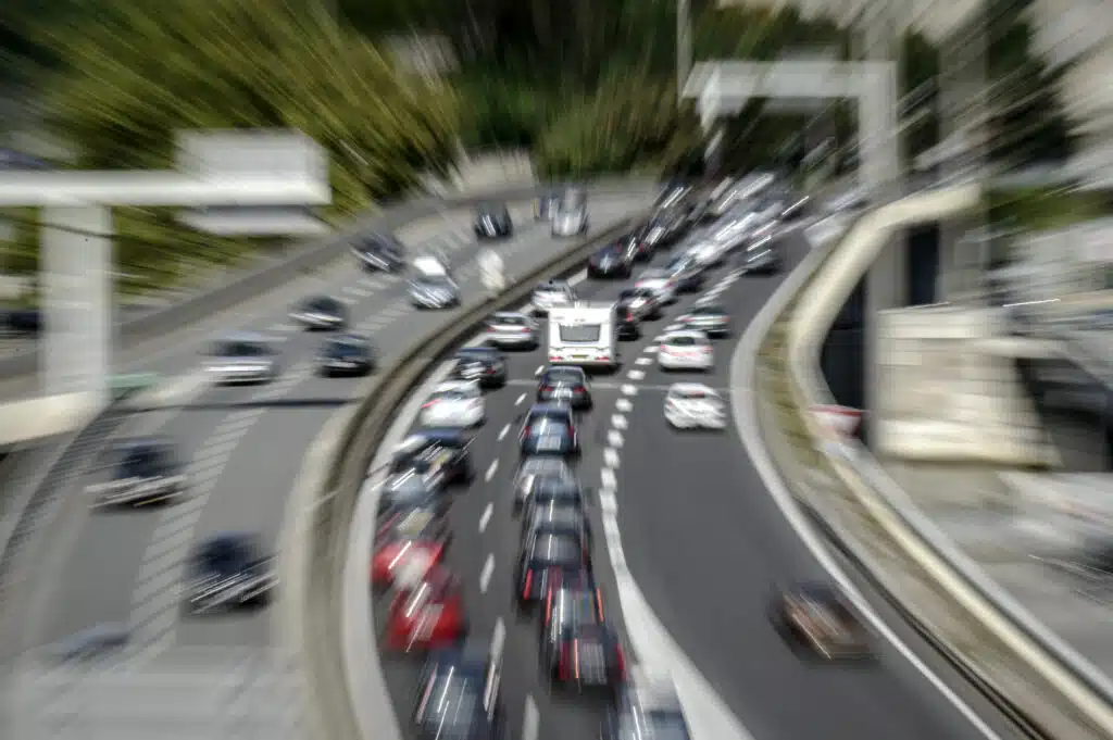 Motorists drive in traffic on the A7 motorway on August 16, 2014 near Lyon, southeastern France, on the major weekend of the French summer holidays. The A7, also known as the "Autoroute du soleil" (the Sun's motorway), links Paris to the French Mediterranean coast. AFP PHOTO / JEAN-PHILIPPE KSIAZEK (Photo by JEAN-PHILIPPE KSIAZEK / AFP)