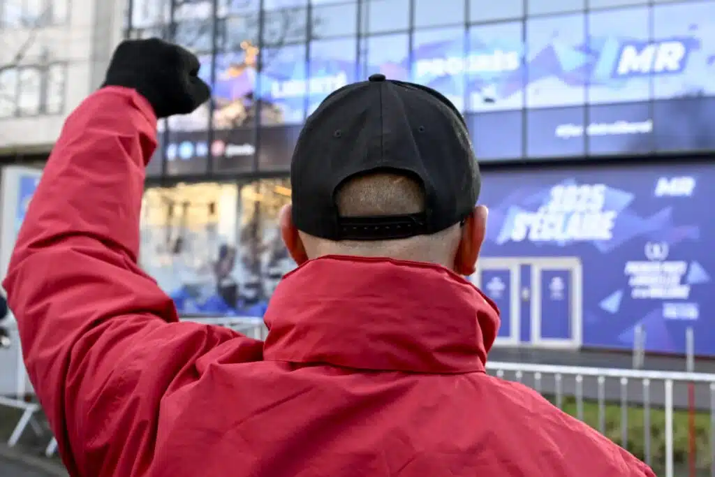 (Photo Belga Dirk Waem : un manifestant devant le siège du MR, 27 janvier 2025)