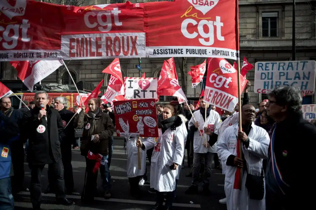29 Mars 2016 : Manifestation du personnel soignant devant le siege de l AP-HP (Assistance Publique Hopitaux de Paris), contre le protocole Hirsch sur l organisation du temps de travail. Un preavis de greve intersyndical a ete depose pour une duree illimitee, pour l ensemble des personnels des etablissements de l Assistance Publique Hopitaux de Paris. Paris, France, photo de Nicolas Messyasz / HansLucas.com