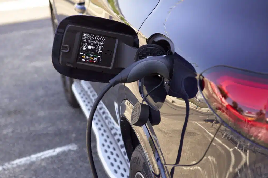 France, Les Sables d Olonne, 2025-08-09. Electric car charging at a downtown charging station. Illustration of transport electrification and electric cars. Photo by Mathieu Thomasset / Hans Lucas. France, Les Sables d Olonne, 2025-08-09. Voiture electrique en charge sur une borne de recharge en centre-ville. Illustration electrification des transports et voitures electriques. Photographie de Mathieu Thomasset / Hans Lucas. Mathieu Thomasset / Hans Lucas / Hans Lucas via AFP