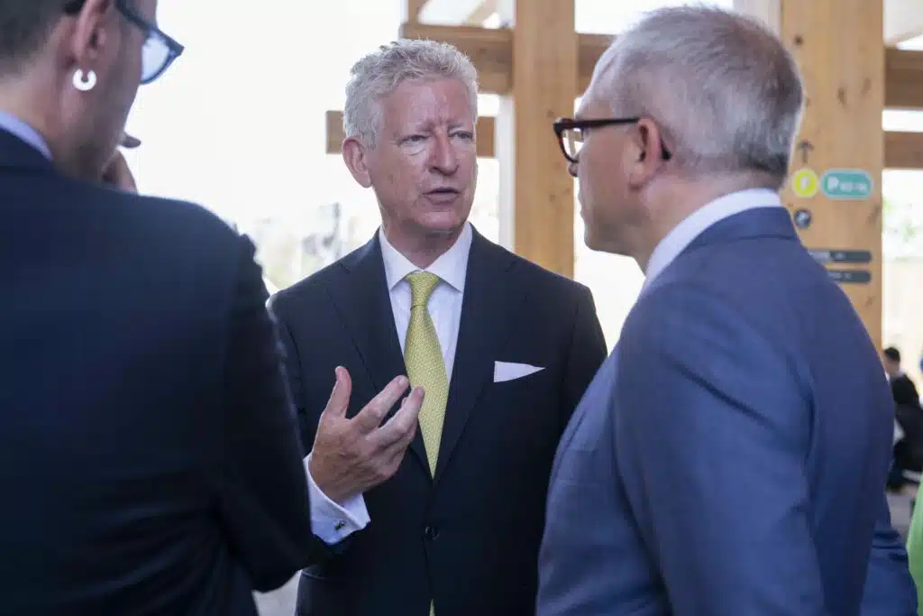 Commissioner General for World Expo 2025 Pieter De Crem and Flemish Minister-President Matthias Diependaele pictured during a visit to the Japanese pavilion at the Universal World Expo (13/04-13/10) during the the Flemish week (15-21/06), in Osaka, Kansai, Japan, Wednesday 18 June 2025. The Expo 2025 is a World Expo organised by the Bureau International des Expositions (BIE). It takes place for six months from 13 April 2025 to 13 October 2025. BELGA PHOTO ROB WALBERS