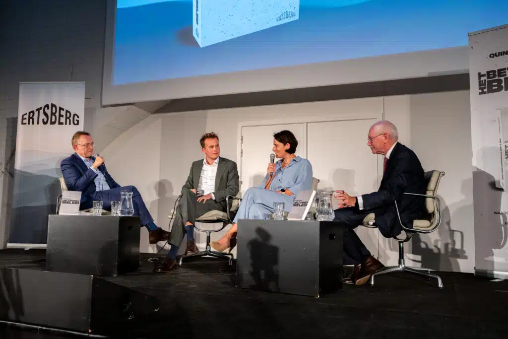 L’auteur, Quinten Jacobs, a lui-même longuement parlé de son livre, interrogé par le journaliste politique de la VRT Ivan De Vadder. Après avoir passé en revue les thèmes principaux, la directrice de la rédaction de De Tijd et L’Echo, Isabel Albers, ainsi que l’ancien homme politique et président du Conseil européen Herman Van Rompuy (CD@V) ont rejoint la scène pour un petit débat.