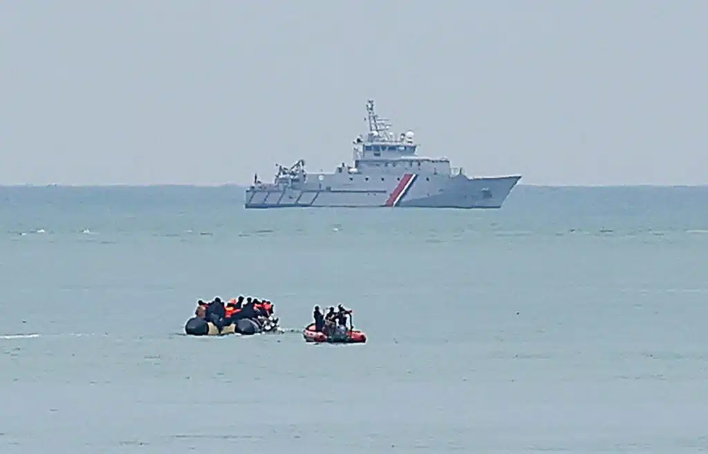 (Photo Sébastien Jarry / La Voix du Nord : tentative de traversée de la Manche par des migrants au large de Wissant, 30 juillet 2025)
