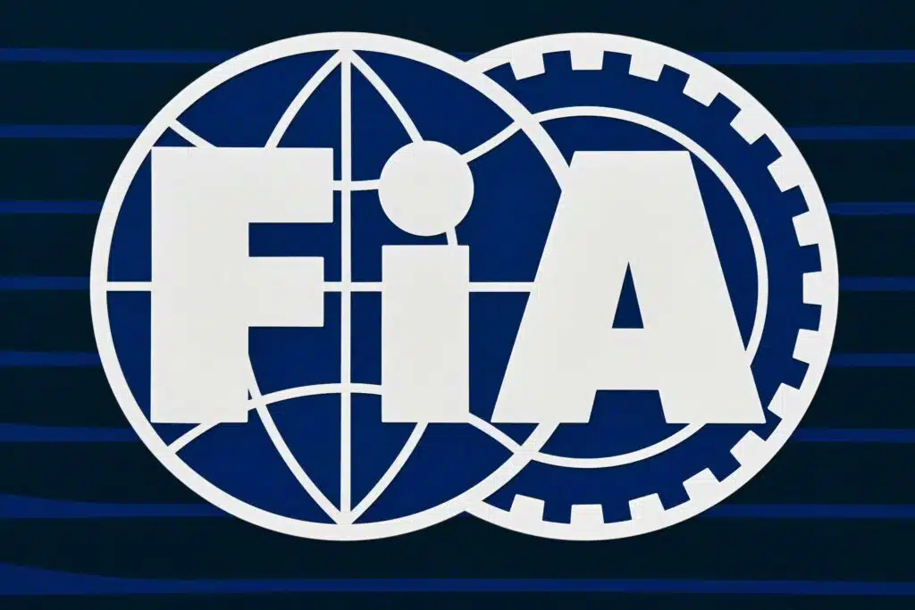 (FILES) A picture of the FIA logo on the first day of the Formula One pre-season testing at the Bahrain International Circuit in Sakhir on February 26, 2025. Swiss racing driver Laura Villars filed legal action on October 29, 2025 against motorsport's governing body to challenge the FIA election rules, which effectively prevent her or any other candidate from running against incumbent president Mohammed Ben Sulayem. Giuseppe CACACE / AFP