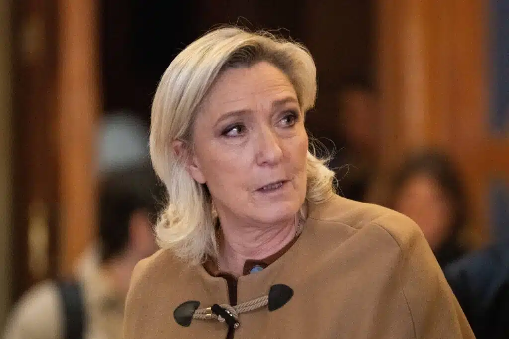 President of the parliamentary group of the French far-right Rassemblement National RN party, Marine Le Pen leaves after a break during her appeal trial on charges of embezzlement of European public funds in a case of alleged European Parliament fake jobs at the Palais de Justice in Paris on February 3, 2026. Marine Le Pen, the National Rally party, and 11 other defendants are on trial before the Paris Court of Appeal from January 13 to February 12 in a case involving the alleged misuse of European Parliament funds. The far-right party leader was convicted at first instance and sentenced to four years in prison, including two to be served, as well as a five-year ban from holding public office. Her potential candidacy in the 2027 presidential election is at stake.//01ACCORSINIJEANNE_BREAK.0010/Credit:Jeanne Accorsini/SIPA/2602031120