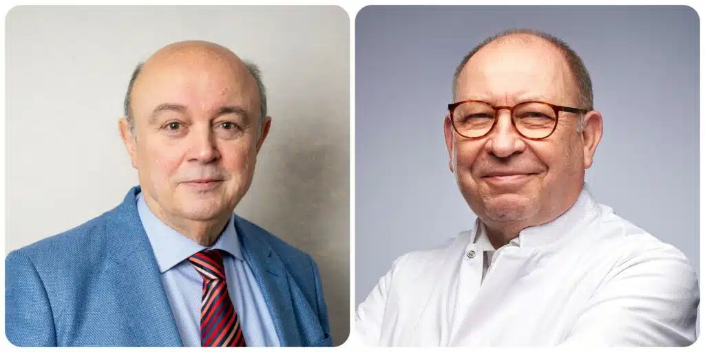 Karel Vermeyen (à gauche sur la photo) a longtemps travaillé comme médecin dans des hôpitaux universitaires, puis est devenu collaborateur de cabinet auprès de Patrick Dewael (Open Vld) et Rudy Demotte (PS). Jan Van Meirhaeghe (à droite) est chirurgien orthopédique et conseiller provincial et communal pour la N-VA. Ils combinent donc la connaissance politique et institutionnelle avec l’expertise médicale.