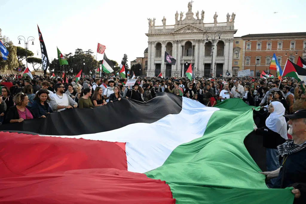 Rome a été le théâtre d’un incident qui secoue l’opinion publique italienne. Ce samedi 4 octobre, en marge d’un rassemblement pro-palestinien, des inconnus ont vandalisé une statue de Jean-Paul II. Sur le monument, dédié au pape polonais décédé en 2005, on pouvait lire l’insulte « fasciste de merde », accompagnée du symbole de la faucille et du marteau, rapporte Rai News.